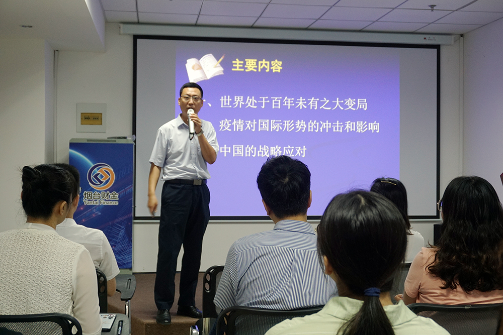 為助力集團(tuán)干部職工拓展視野,增長知識(shí),進(jìn)一步認(rèn)清當(dāng)前國內(nèi)國際形勢(shì),擔(dān)當(dāng)使命,自覺應(yīng)對(duì)風(fēng)險(xiǎn)挑戰(zhàn),7月23日上午,集團(tuán)舉辦了第三期“財(cái)金大講堂”,開展國情黨情和形勢(shì)政策教育,邀請(qǐng)到中共煙臺(tái)市委黨校哲學(xué)教研室副主任、副教授劉中興帶來《當(dāng)前國際形勢(shì)——疫情沖擊與戰(zhàn)略應(yīng)對(duì)》專題講座。
