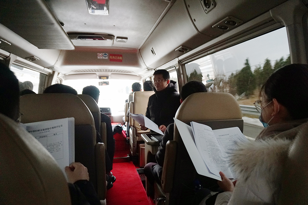 在前往觀摩現(xiàn)場途中,集團綜合部副部長安少帥向市委組織部、市財政局和集團領(lǐng)導(dǎo)詳細介紹本次觀摩活動的行程安排。