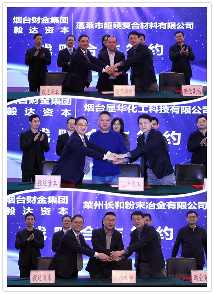 12月30日下午,新舊動能轉(zhuǎn)換毅達(dá)基金在東方海天酒店舉行投資項目集中簽約儀式,先后與煙臺顯華化工科技有限公司、萊州長和粉末冶金有限公司、蓬萊市超硬復(fù)合材料有限公司三家企業(yè)簽訂股權(quán)投資戰(zhàn)略合作協(xié)議。市發(fā)改委、財政局、金融監(jiān)管局、科技局相關(guān)領(lǐng)導(dǎo)受邀出席,與煙臺財金集團(tuán)董事長劉海彬、毅達(dá)資本創(chuàng)始合伙人樊利平等投資方領(lǐng)導(dǎo)、簽約企業(yè)代表共同見證簽約。