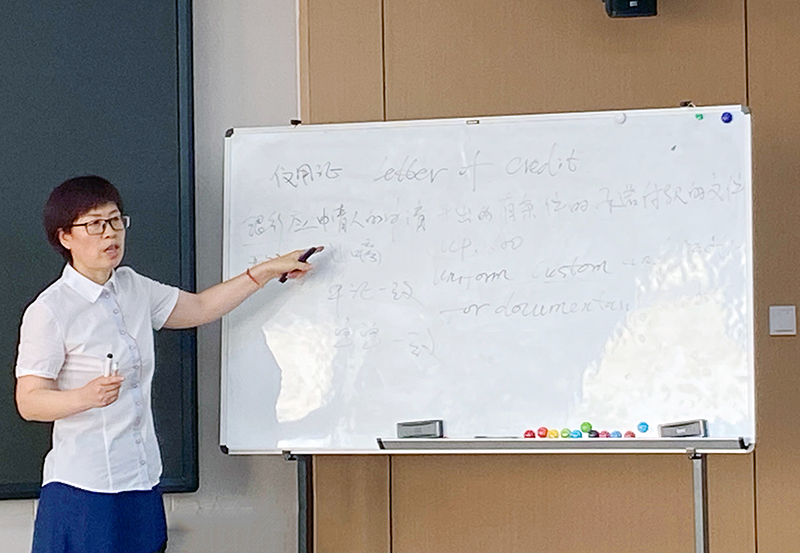 隨后,主講人對融資市場及主要融資品種進行講解,詳細(xì)區(qū)分解析了公司債券、企業(yè)債券、債務(wù)融資工具,并著重以集團投資企業(yè)——煙臺新能智慧產(chǎn)業(yè)園為例,講解了國際貿(mào)易結(jié)算工具信用證的使用和融資實務(wù),為便于理解,她在現(xiàn)場繪制了信用證業(yè)務(wù)流程圖。講授中,主講人不斷拋出問題,設(shè)置了有獎問答環(huán)節(jié),大家一直緊緊跟隨著她的節(jié)奏,認(rèn)真聆聽,主動思考,深入探討交流。