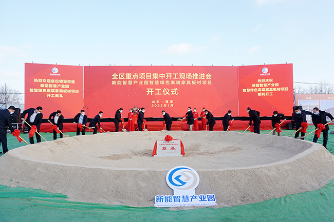 開局就是決戰(zhàn),起步就是沖刺。1月16日上午,煙臺市舉行2022年重點項目集中開工活動,在蓬萊區(qū)分會場,新能智慧產(chǎn)業(yè)園智慧綠色高端家具板材一期項目奠基開工。蓬萊區(qū)委書記林鈺濤、區(qū)長王長港及區(qū)委區(qū)政府其他領導班子成員出席活動慶典,煙臺財金集團總經(jīng)理李輝、煙臺新能智慧產(chǎn)業(yè)園董事長吳軍紀、總經(jīng)理高春光及產(chǎn)業(yè)園全體員工共同參加慶典并見證項目奠基開工。