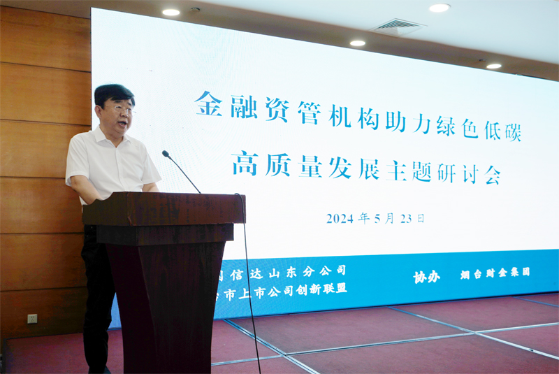 5月23日上午,由中國信達山東分公司主辦,煙臺財金集團協(xié)辦的“金融資管機構助力綠色低碳高質量發(fā)展主題研討會”在東方海天酒店順利召開。煙臺市財政局副局長崔立國,中國信達山東分公司黨委書記、總經理張希穎,煙臺財金集團黨委書記、董事長田序潤,各區(qū)市金融穩(wěn)定發(fā)展領導小組辦公室,藍天集團、國豐集團以及煙臺市23家上市公司相關負責人等共計80余人參會。
