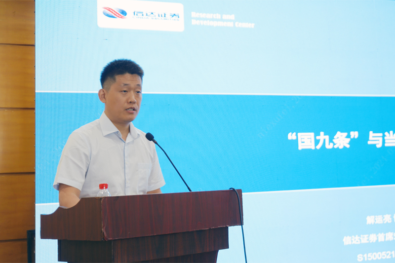 會議由煙臺財金集團黨委委員、副總經理修兆強主持。會上,中國信達山東分公司業(yè)務四處處長楊健、信達證券宏觀首席分析師解運亮先后分別以《不良資產視角下的上市公司并購重組》和《“國九條”與當前經濟形勢》為題進行主題分享。