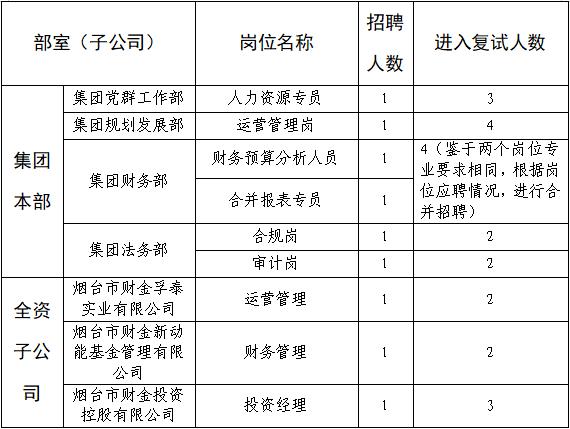 按照《2020年煙臺財(cái)金集團(tuán)面向“雙一流”和全球TOP200高校畢業(yè)生公開招聘簡章》工作安排,公司分別于9月9日、9月18日組織了兩個(gè)批次的初試,根據(jù)初試總體情況,經(jīng)研究決定,擬對部分崗位組織復(fù)試,現(xiàn)將有關(guān)事項(xiàng)公告如下: