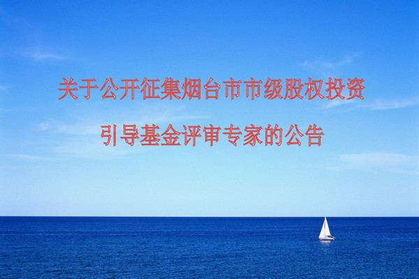 為加強煙臺市市級股權(quán)投資引導基金評審專家(以下簡稱專家)管理,規(guī)范專家執(zhí)業(yè)行為,保障征集子基金管理機構(gòu)及參股子基金方案評審工作,根據(jù)《煙臺市市級股權(quán)投資引導基金管理暫行辦法》(煙政辦發(fā)〔2015〕5 號)和《煙臺市市級股權(quán)投資引導基金評審專家管理暫行辦法》(煙財辦〔2015〕2號)有關(guān)要求,煙臺市財政局、煙臺市財金投資有限公司決定面向社會公開征集煙臺市市級股權(quán)投資引導基金評審專家,現(xiàn)公告如下: